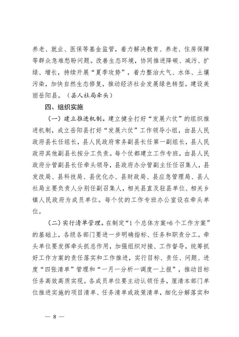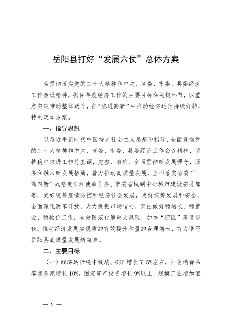 嶽陽縣打好“發展六仗”總體方案