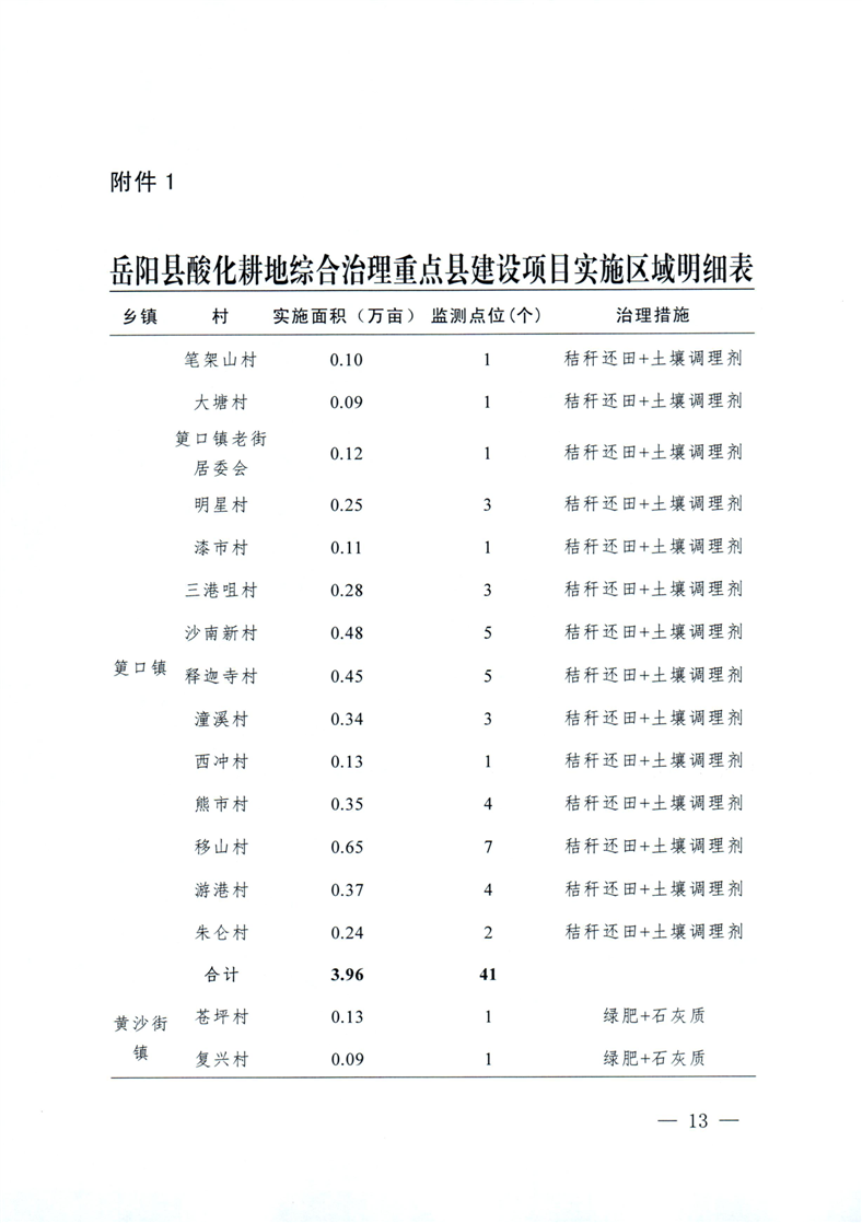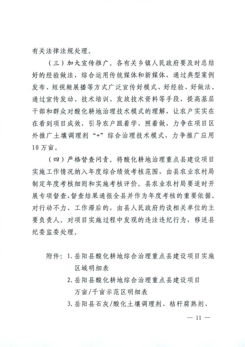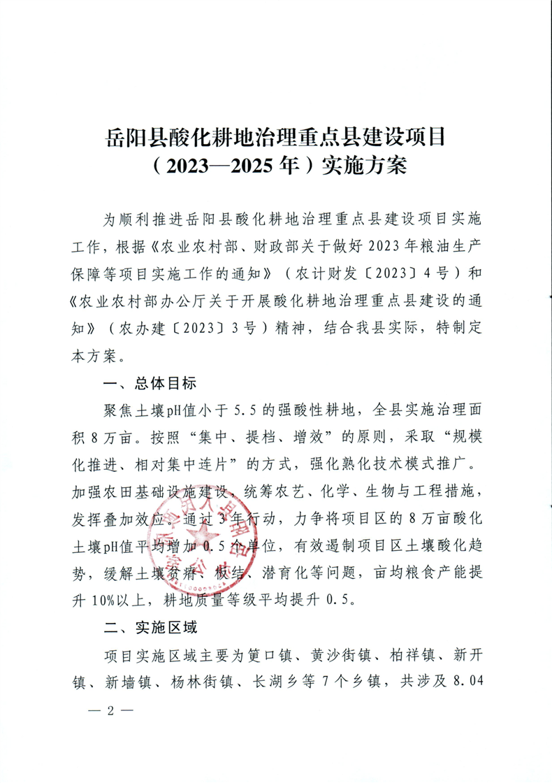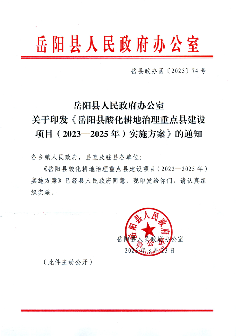 關於印發《嶽陽縣酸化耕地治理重點縣建設項目(2023-2025年)實施方案》的通知