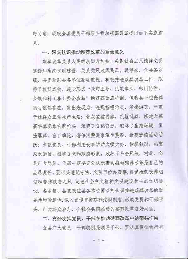關於黨員幹部帶頭推動殯葬改革的實施意見