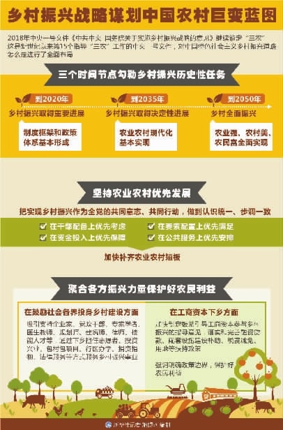 “實施鄉村振興戰略,是新時代做好‘三農’工作的總抓手、新旗幟。”中央農辦主任韓俊說,“文件按‘遠粗近細’原則對實施鄉村振興戰略的三個階段性目標任務作了部署。”