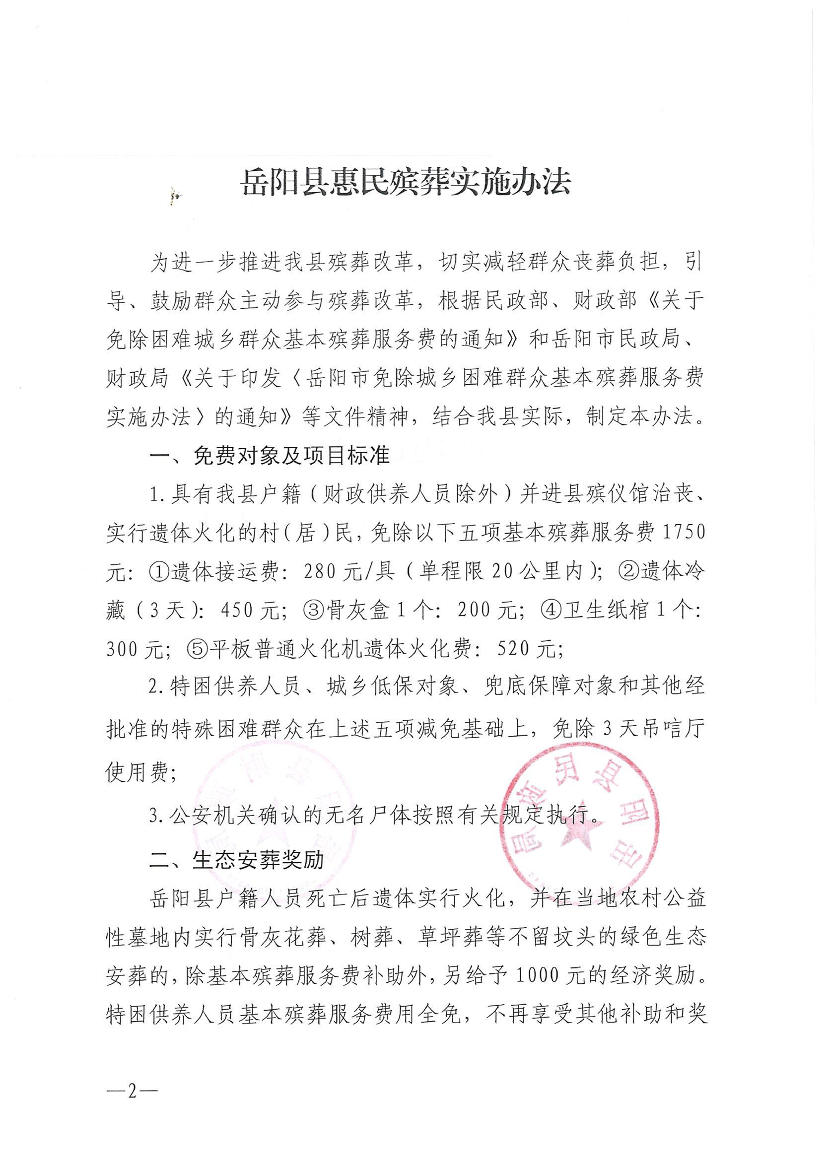 嶽陽縣惠民殯葬實施辦法