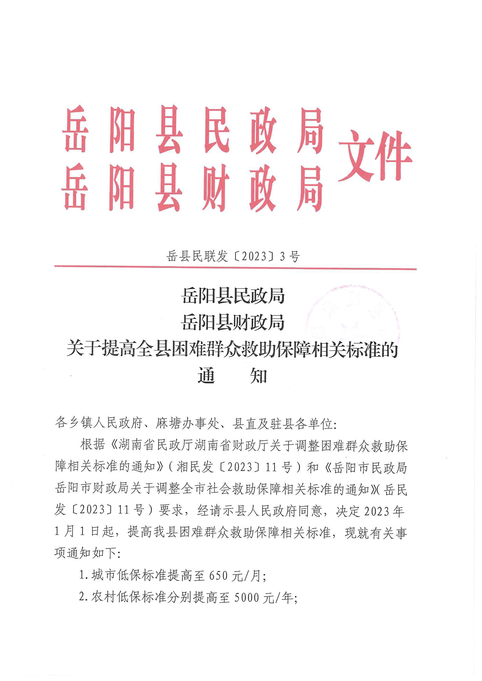 關於提高全縣困難群眾救助保障相關標準的通知