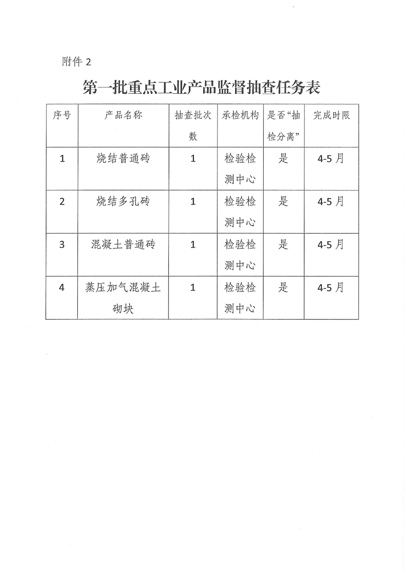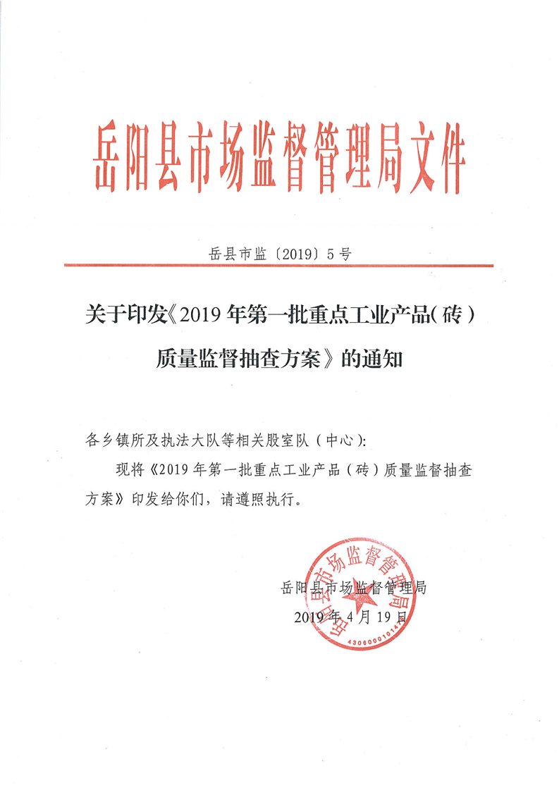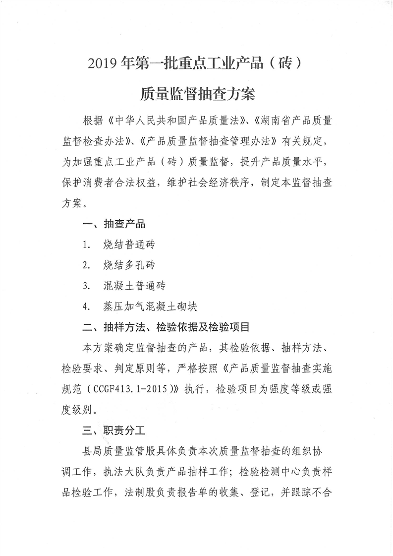 關於印發《2019年第一批重點工業產品(磚)質量監督抽查方案》的通知