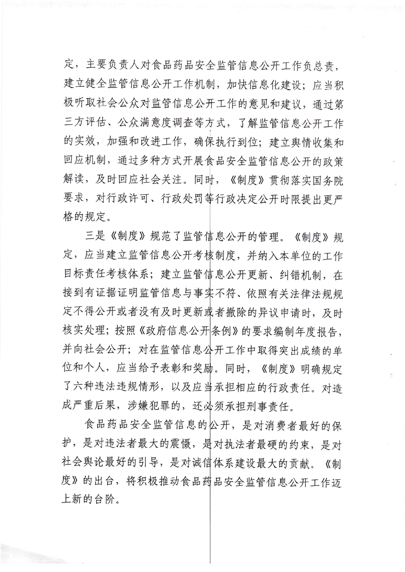食品安全監管執法信息公開製度