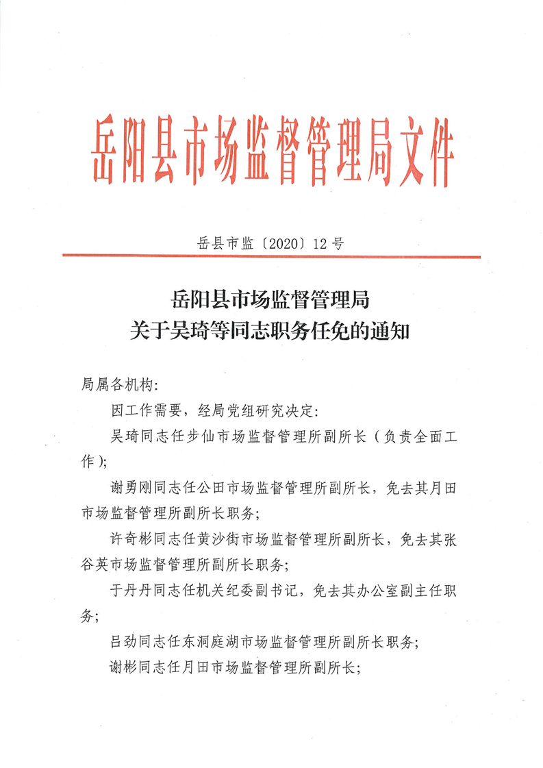 關於吳琦等同誌職務任免的通知