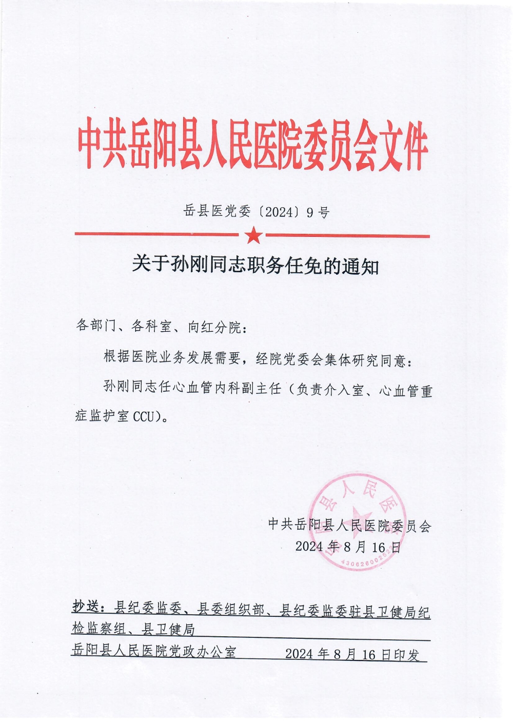 關於孫剛同誌職務任免的通知
