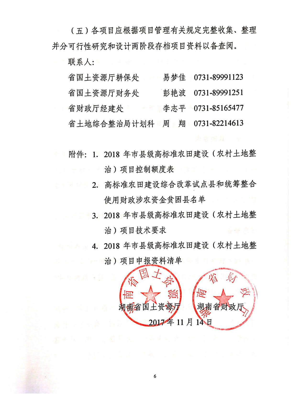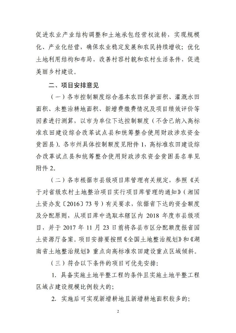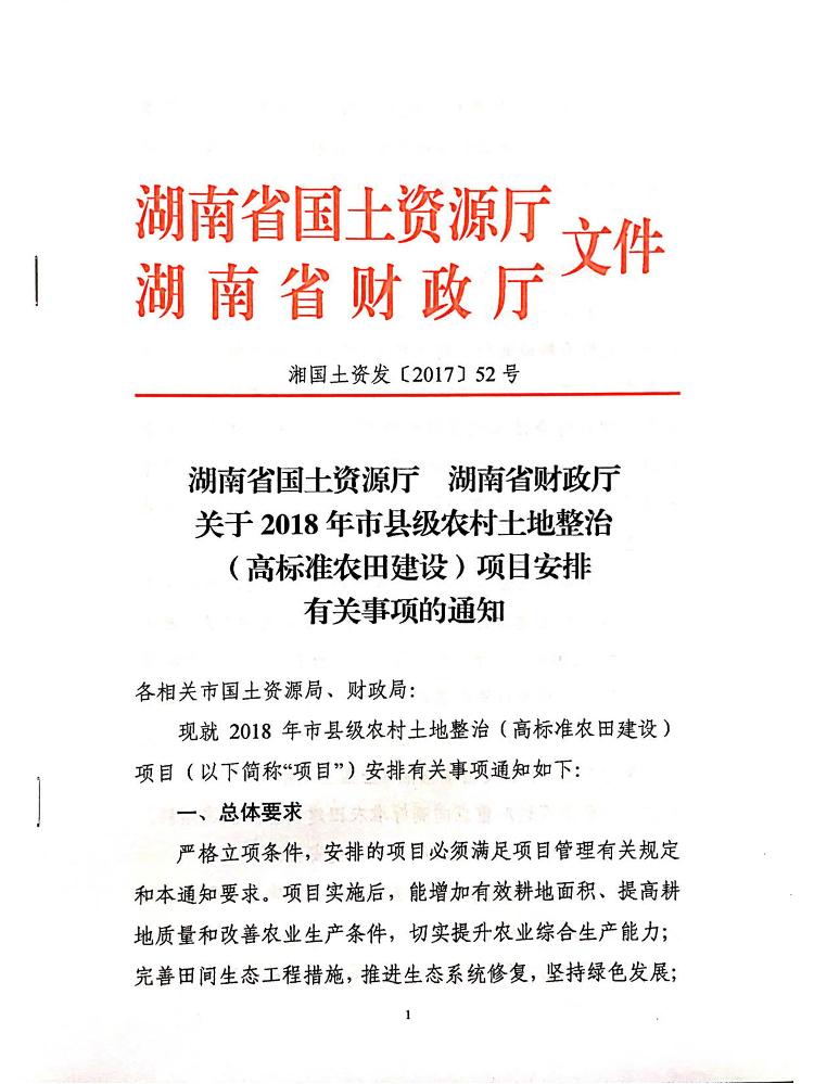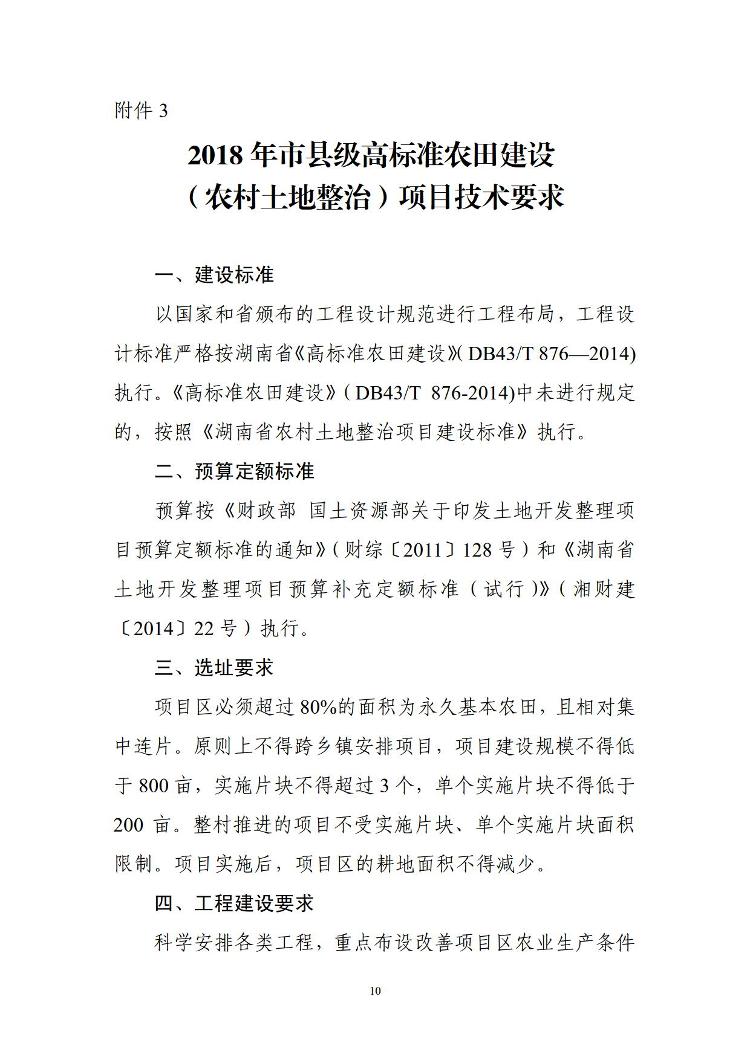 湖南省國土資源廳 湖南省財政廳關於2018年市縣級農村土地整治(高標準農田建設)項目安排有關事項的通知