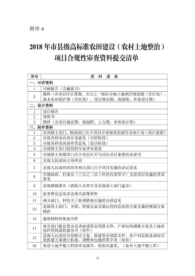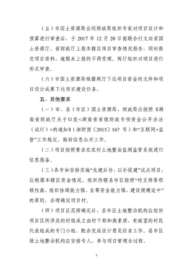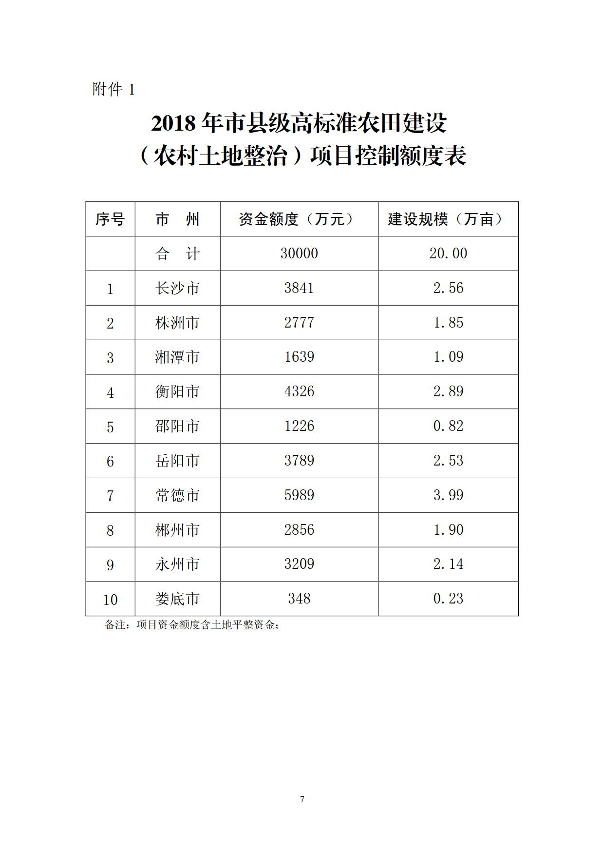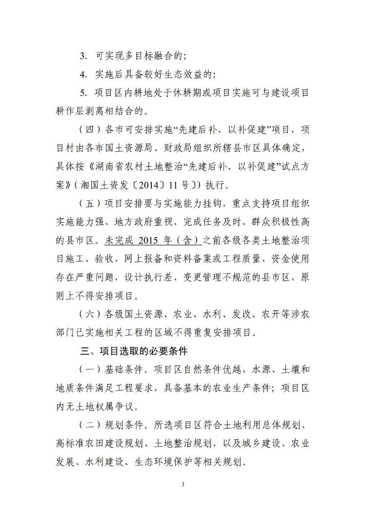 湖南省國土資源廳 湖南省財政廳關於2018年市縣級農村土地整治(高標準農田建設)項目安排有關事項的通知