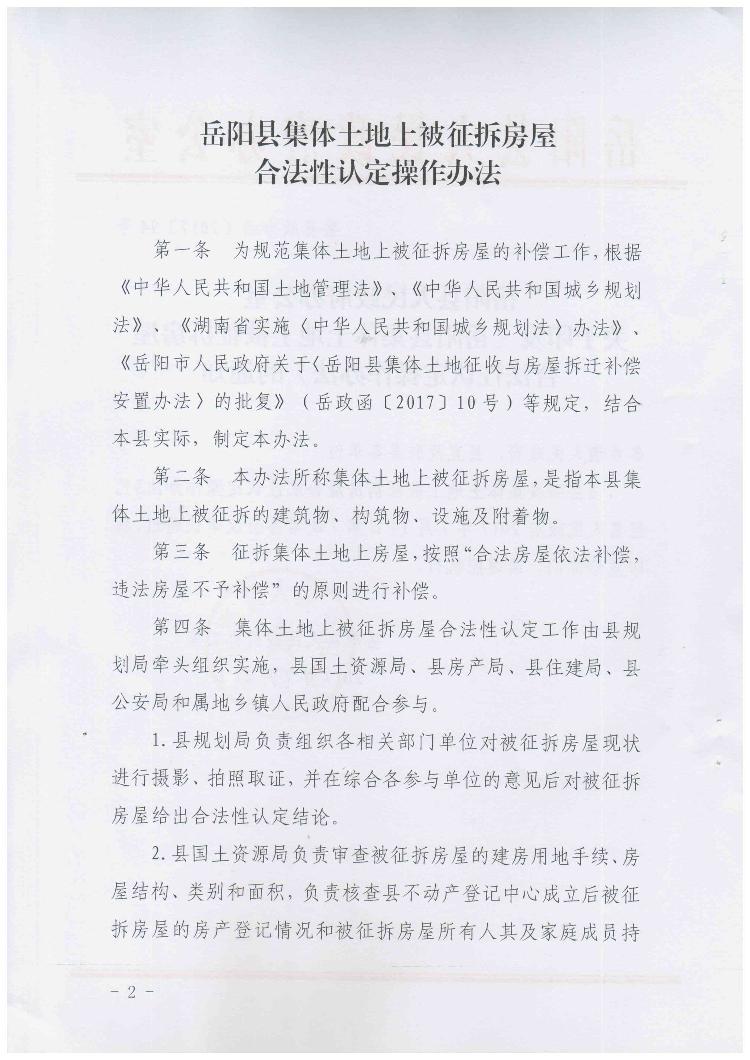 嶽陽縣集體土地上被征拆房屋合法性認定操作辦法