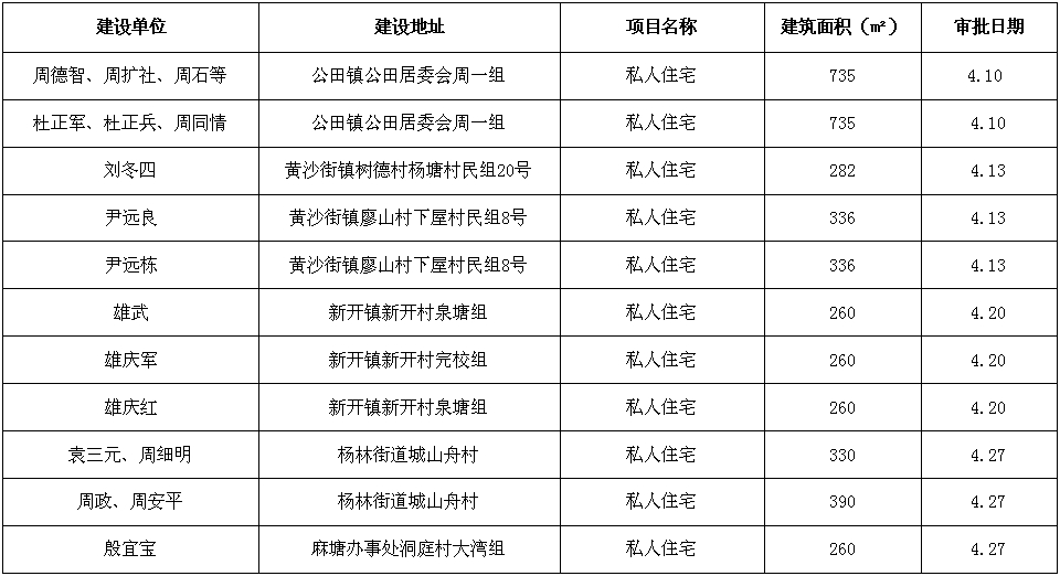 2018年4月份鄉鎮建設審批情況公布
