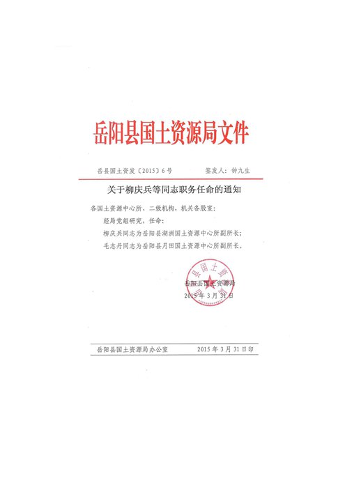 關於柳慶兵等同誌職務任命的通知