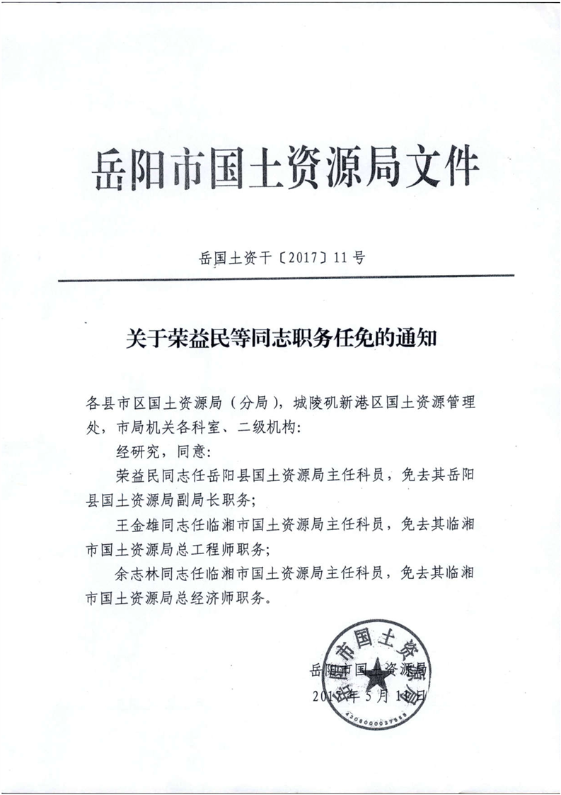 關於榮益民等同誌職務任免的通知