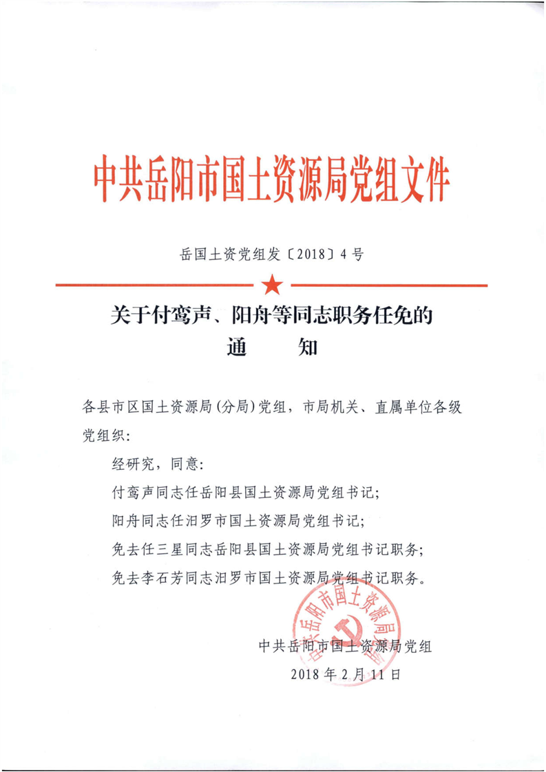 關於付鸞聲、陽舟等同誌職務任免的通知