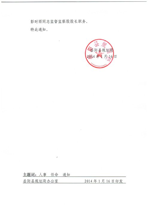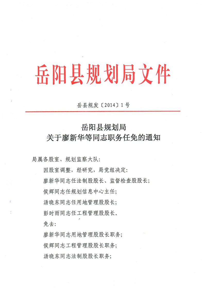嶽陽縣規劃局關於廖新華等同誌職務任免的通知