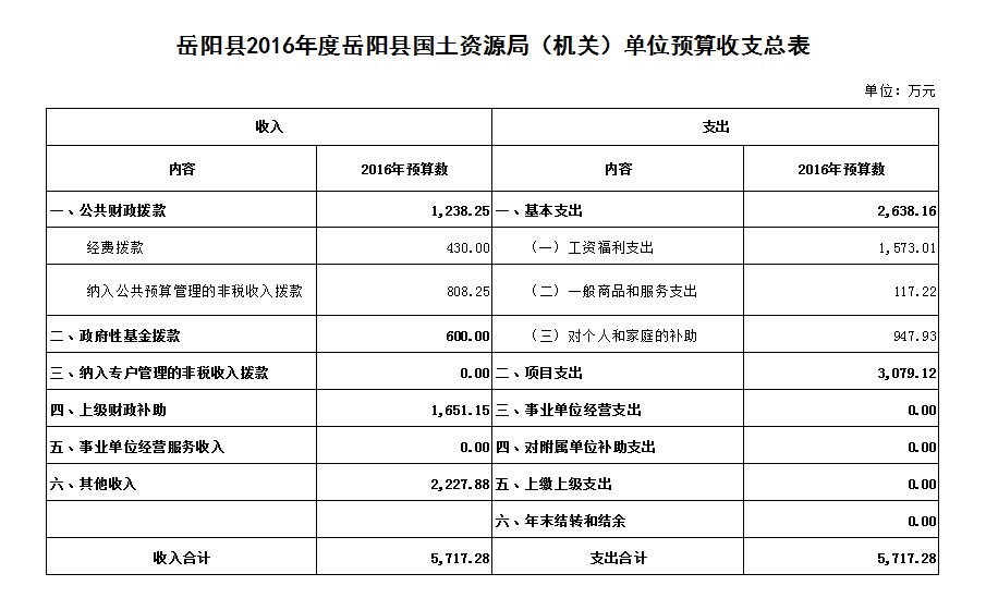 | 嶽陽縣2016-度嶽陽縣國土資源局(機關)單位支出預算明細表 | |||||||||||||