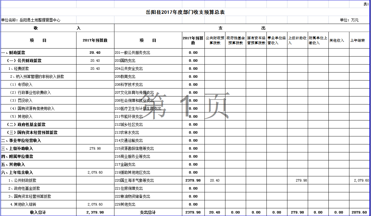 嶽陽縣2017年度部門預算公開--土整中心