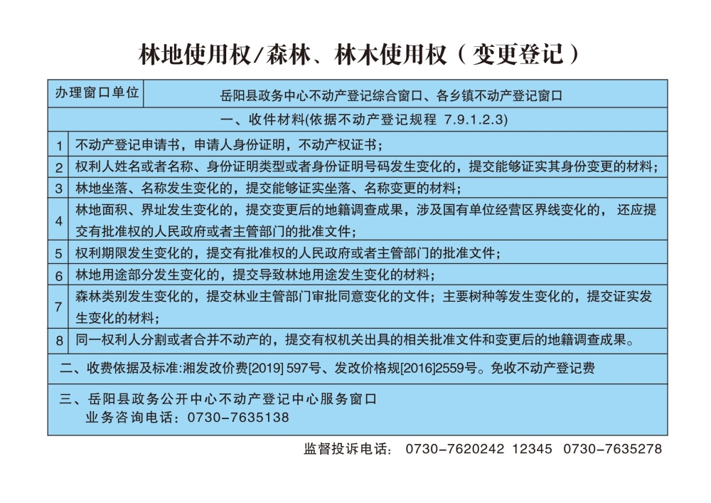 林地使用權森林、林木使用權(變更登記)辦事指南