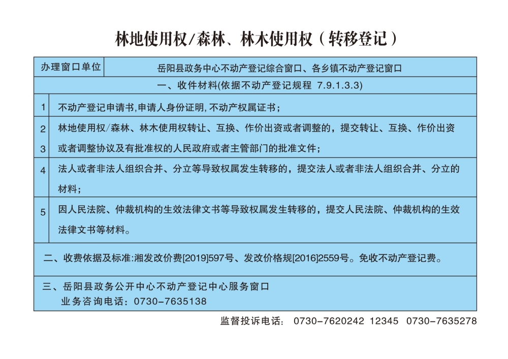 林地使用權森林、林木使用權(轉移登記)辦事指南