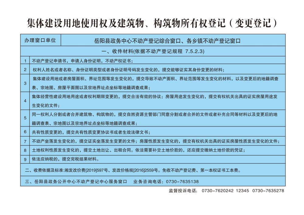 集體建設用地使用權及建築物、構築物所有權登記(變更)辦事指南