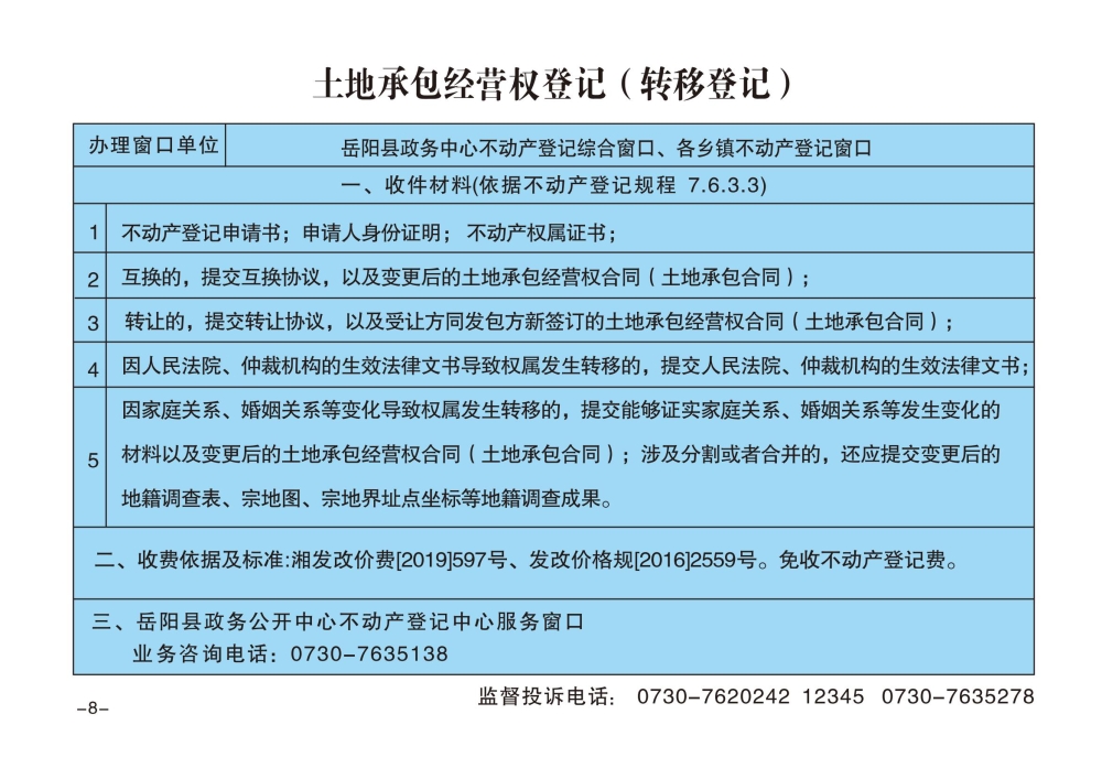土地承包經營權登記(轉移)辦事指南