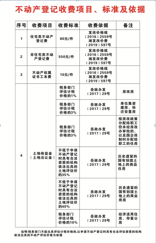 不動產登記收費項目、標準及依據