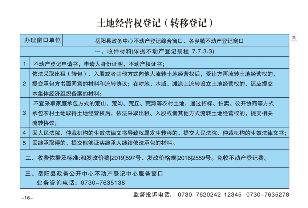土地經營權登記(轉移登記)辦事指南