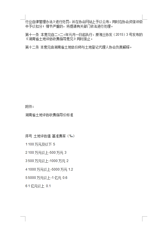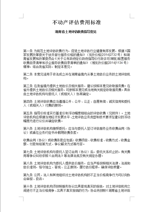 不動產評估費用標準 (湖南省土地評估收費指導意見)