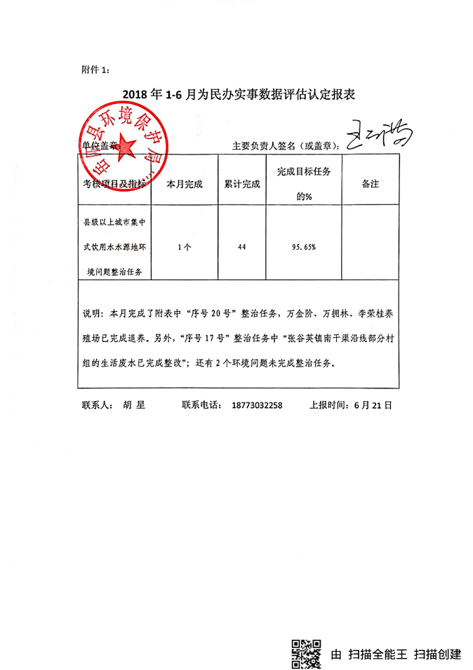 2018年1-6月為民辦實事數據評估認定報表