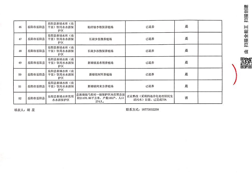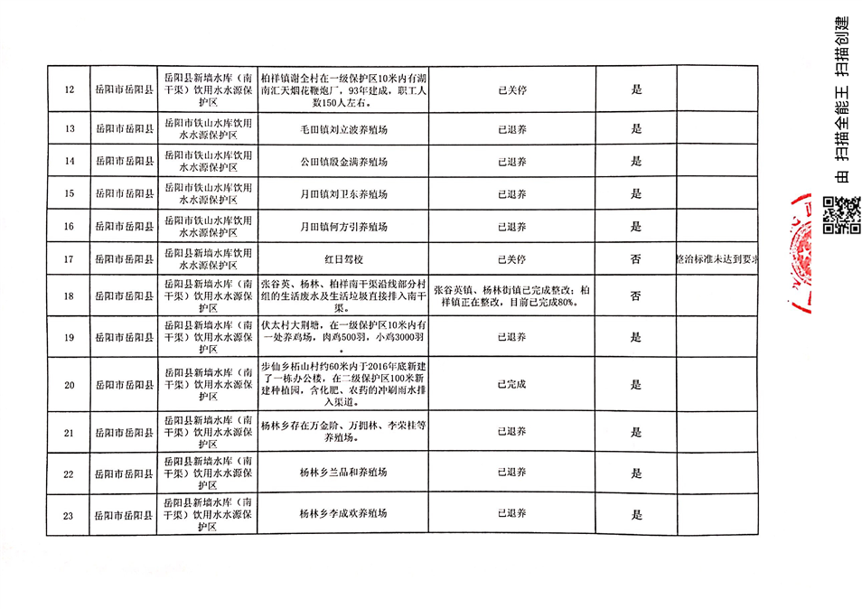 2018年7月飲用水水源地環境問題清理整治進展情況統計表