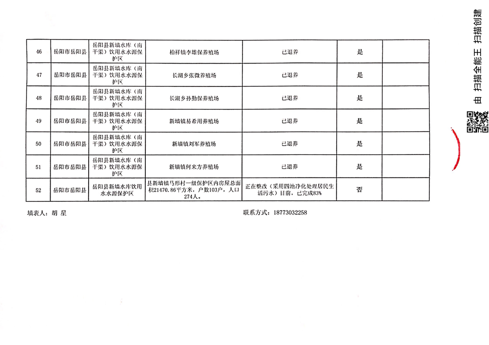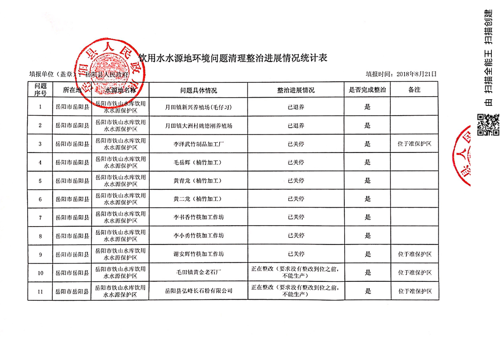 2018年8月飲用水水源地環境問題清理整治進展情況統計表