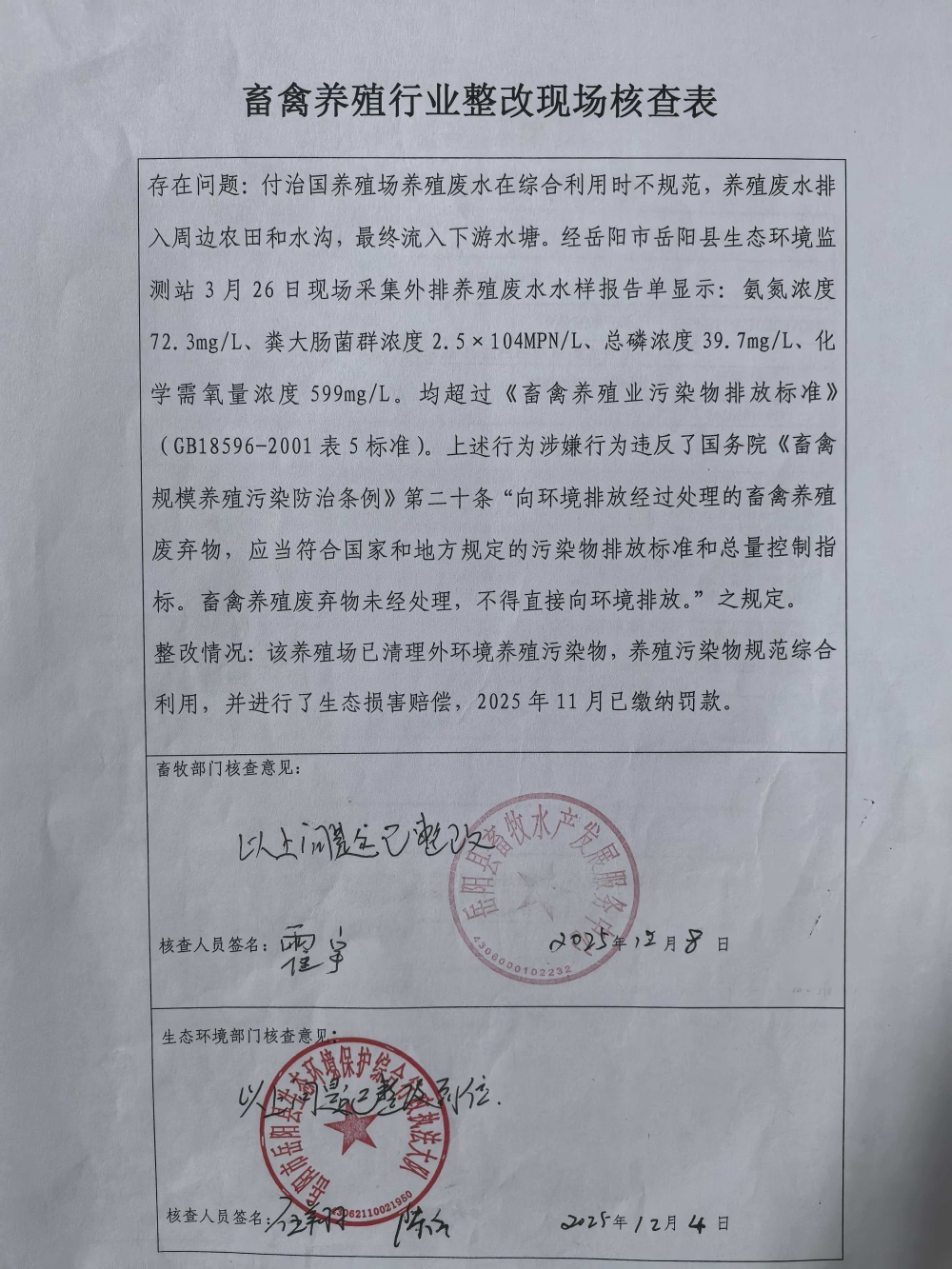 付治國【嶽縣環罰(2025)3號】整改措施落實情況後督查