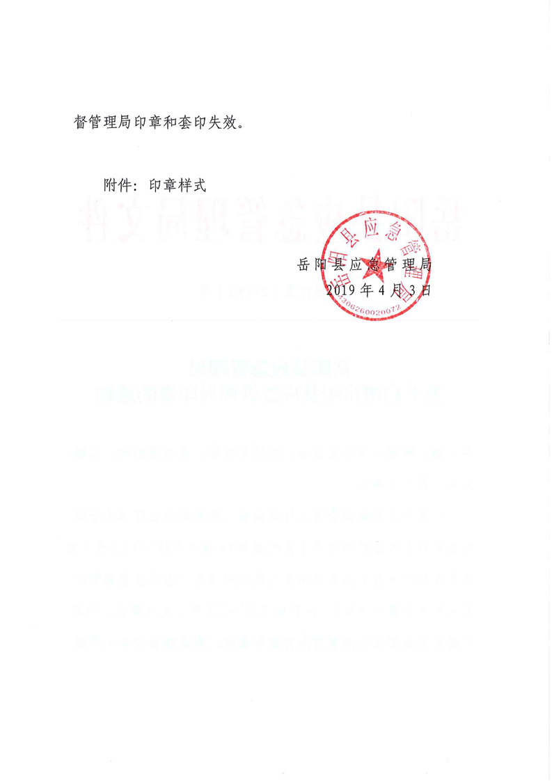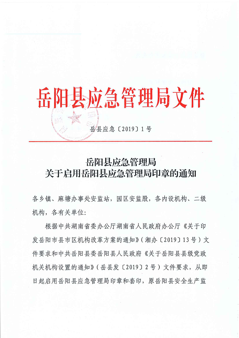 嶽陽縣應急管理局關於啟用嶽陽縣應急管理局印章的通知