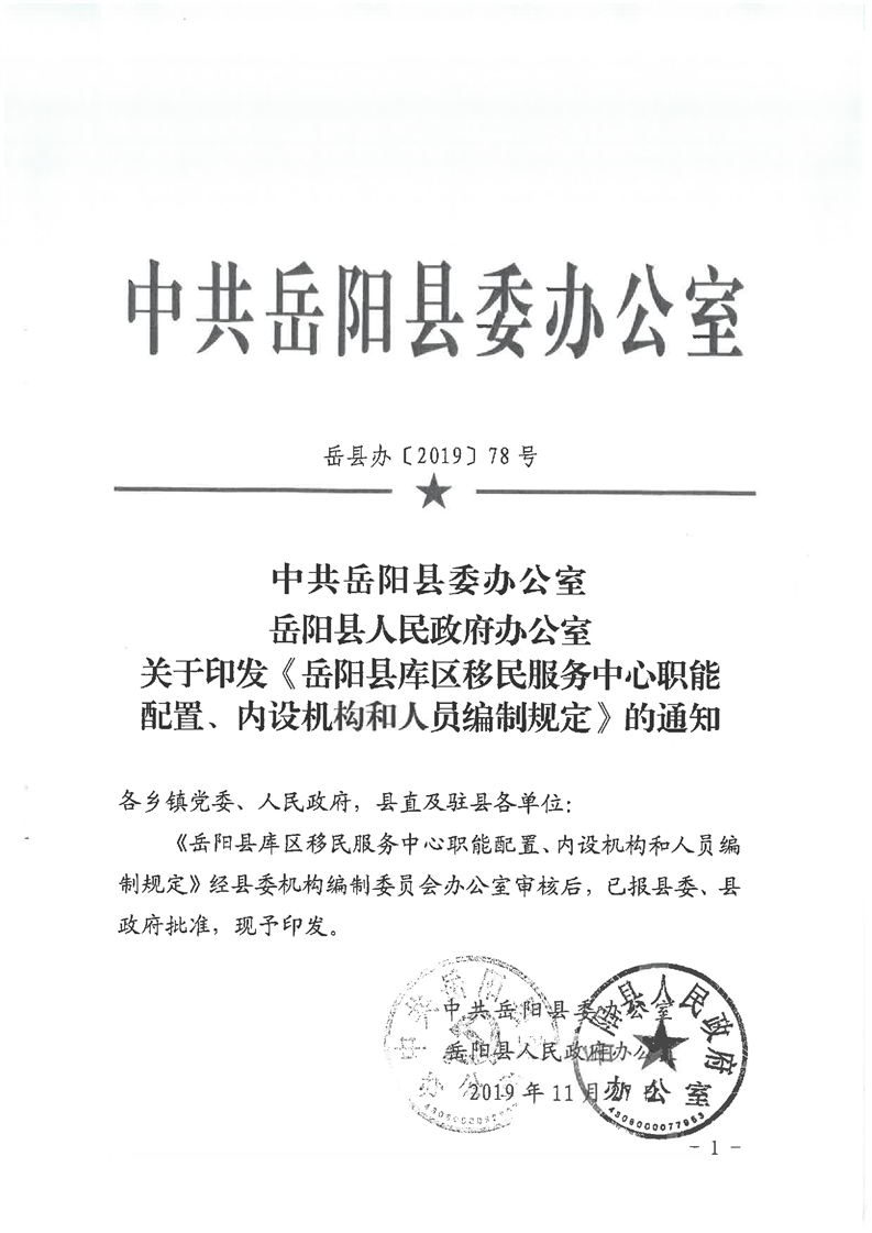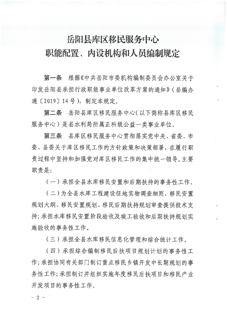 嶽陽縣庫區移民服務中心職能配置、內設機構和人員編製規定