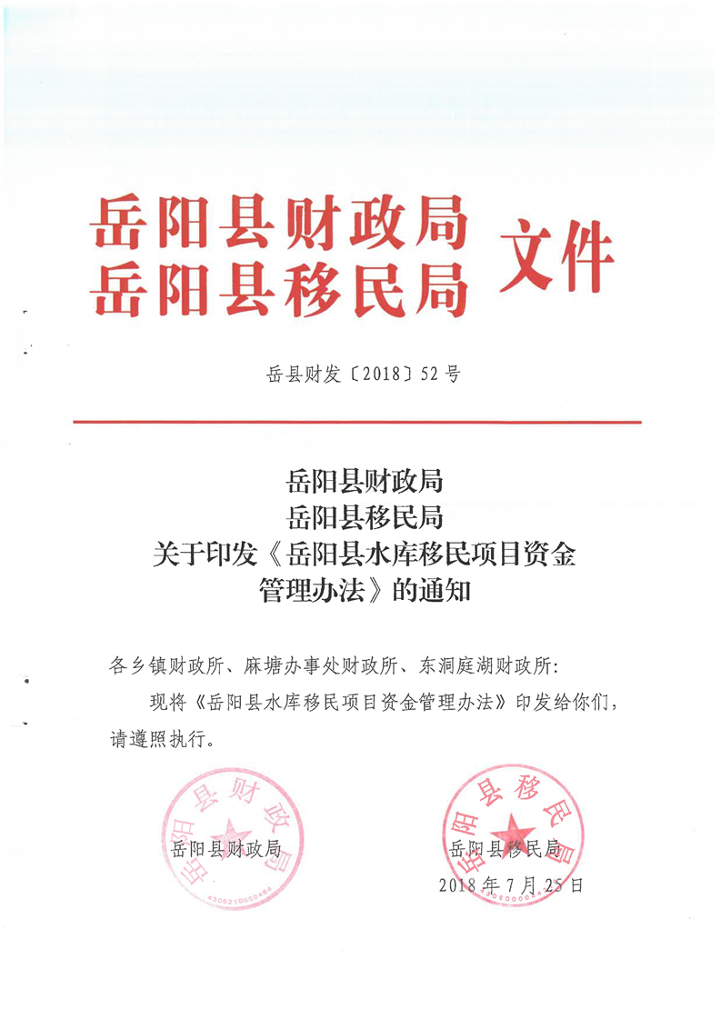 嶽陽縣水庫移民項目資金管理辦法