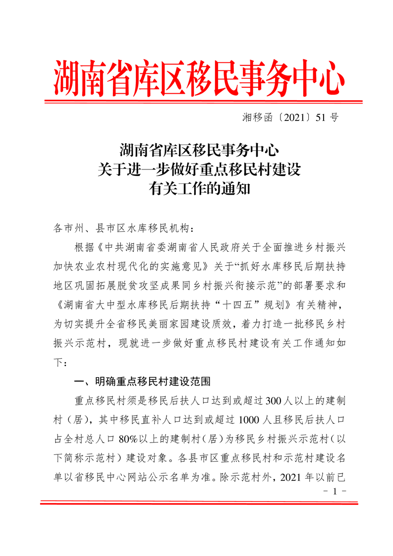 湖南省庫區移民事務中心 關於進一步做好重點移民村建設有關工作的通知