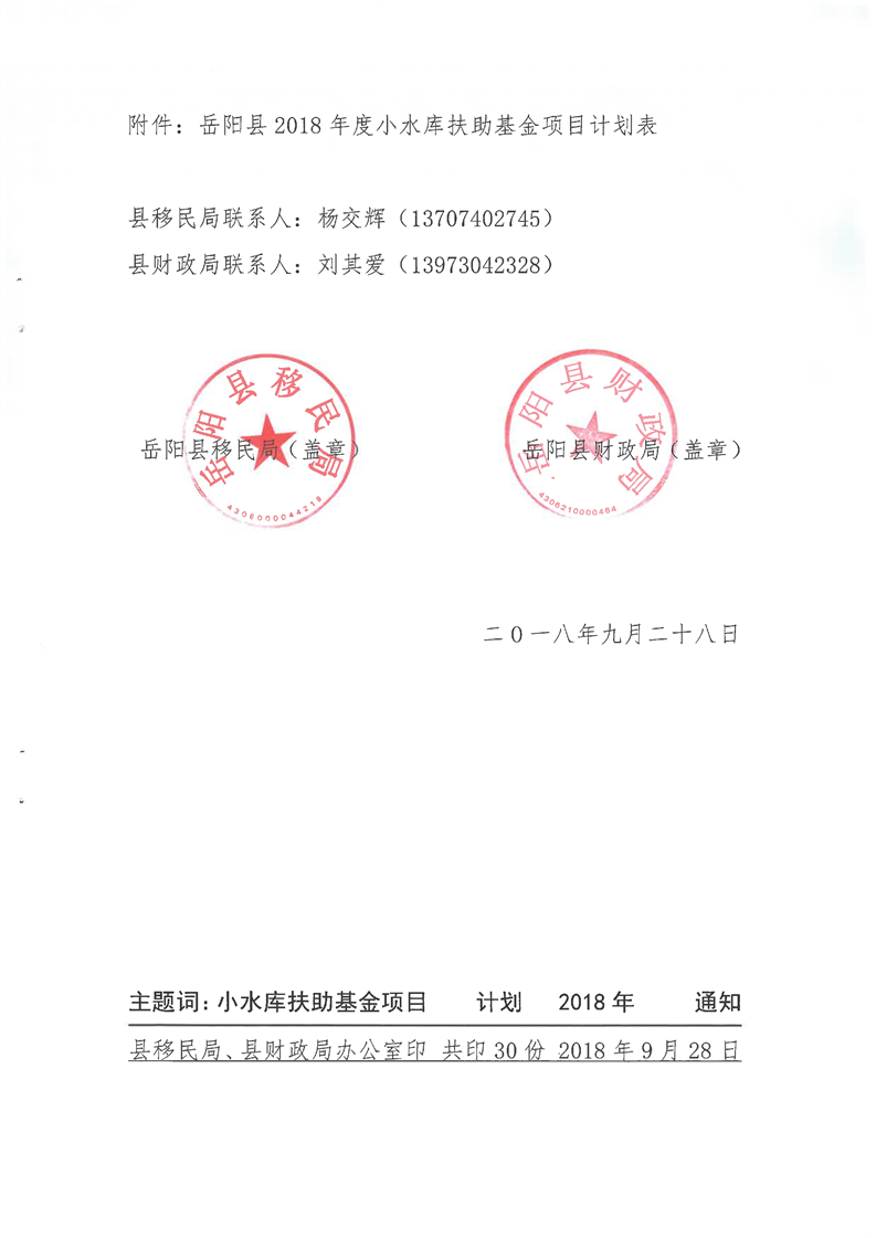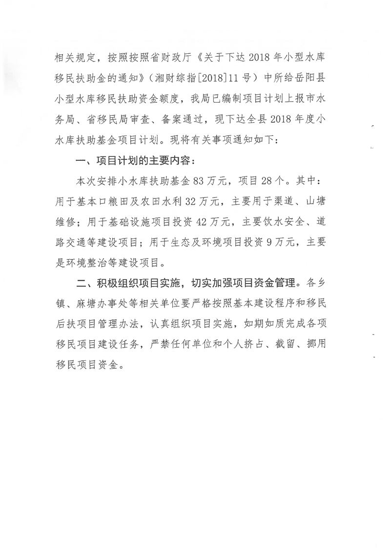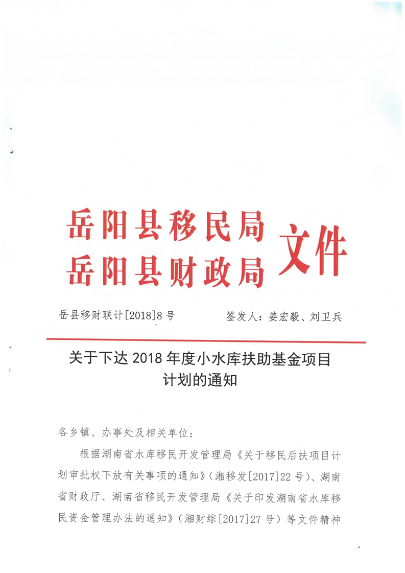 嶽縣移計[2018]8號文計劃下達的通知