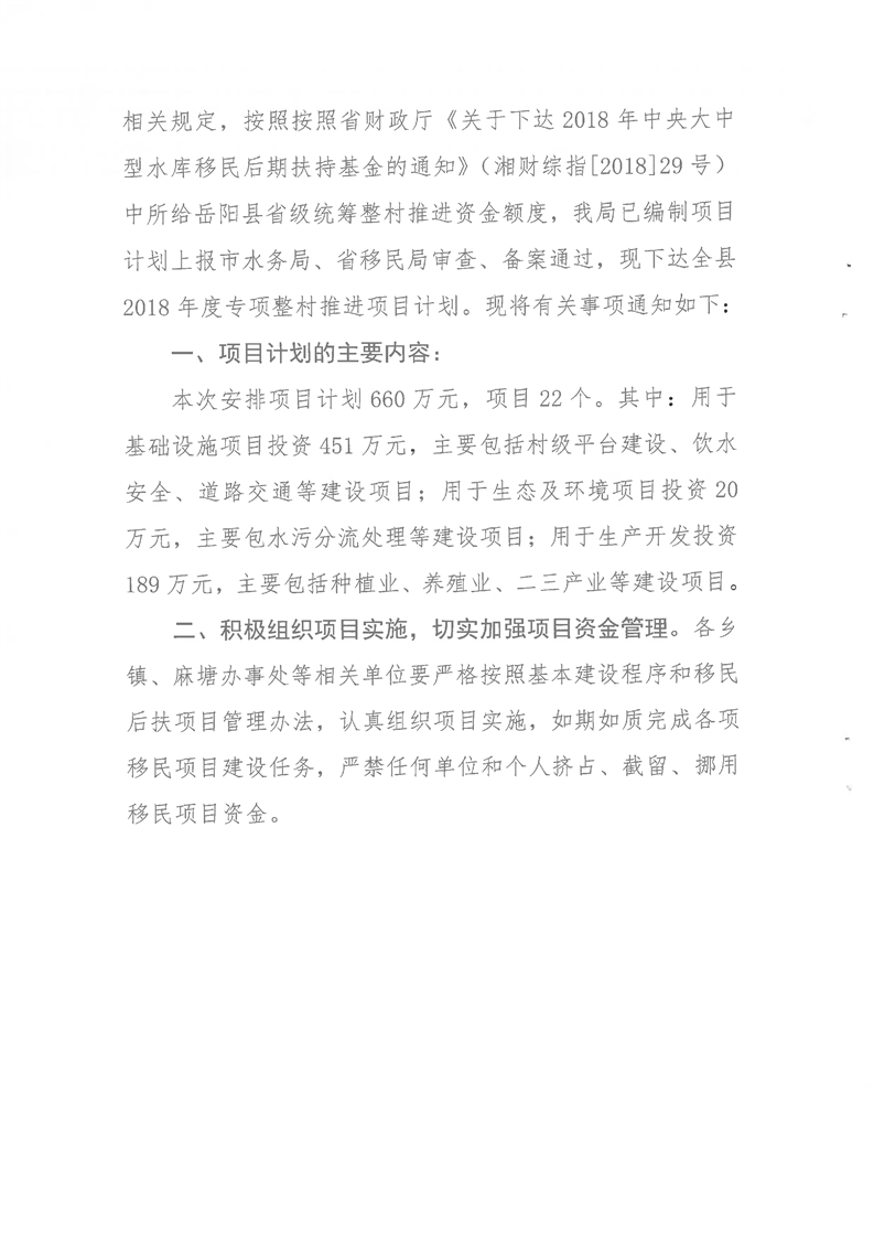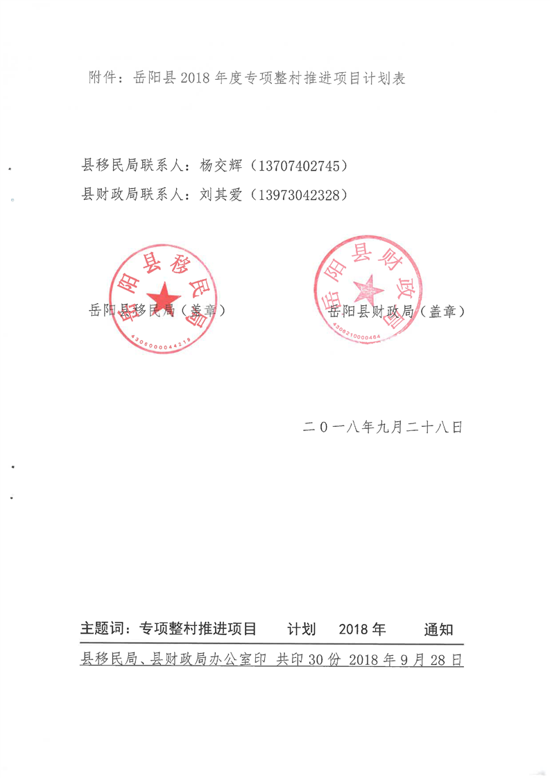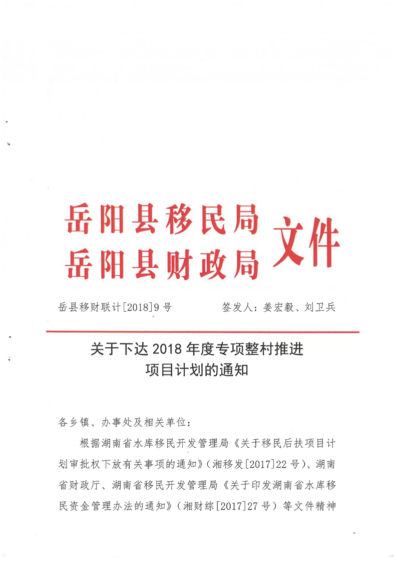 嶽縣移計[2018]9號文計劃下達的通知