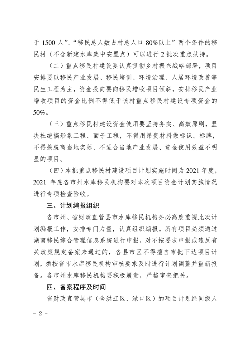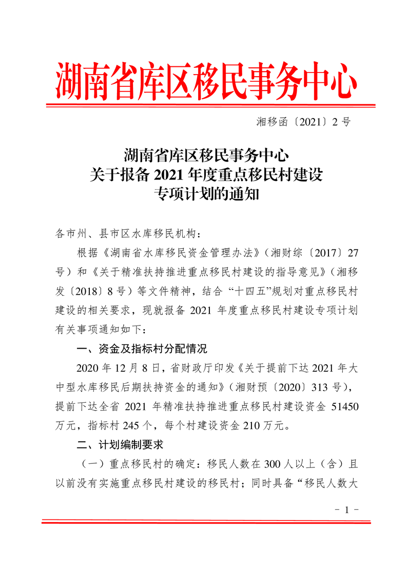 關於報備2021年度重點移民村建設專項計劃的通知