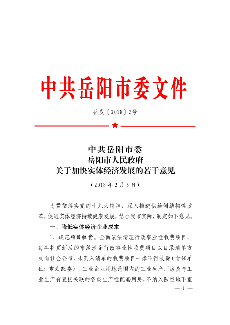 嶽發〔2018〕3號 關於加快實體經濟發展的若幹意見