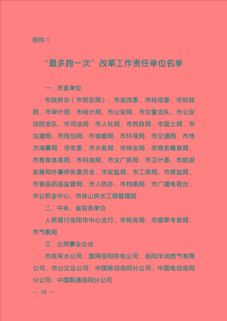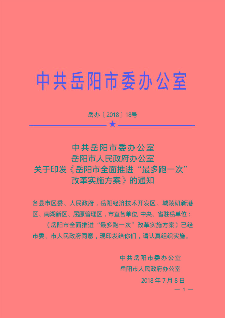 嶽陽市全麵推進“最多跑一次” 改革實施方案