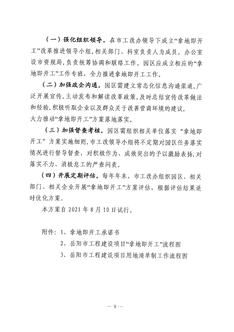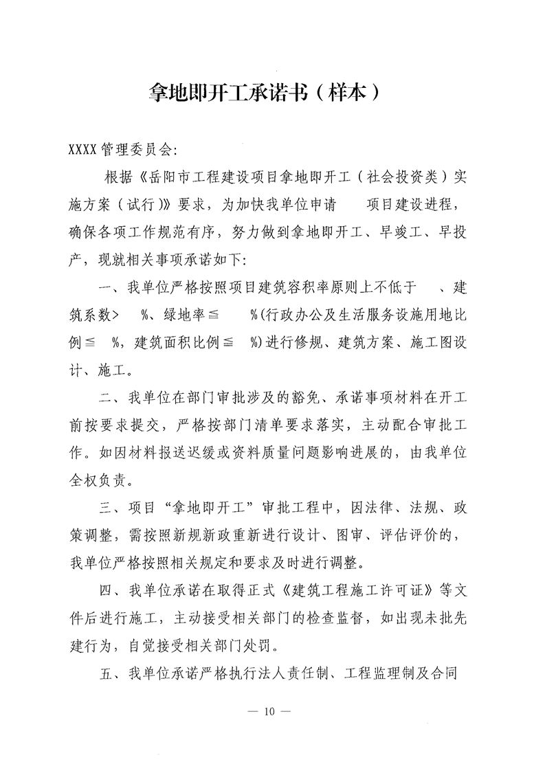關於印發《嶽陽市工程建設項目拿地即開工(社會投資)實施方案(試行)》的通知