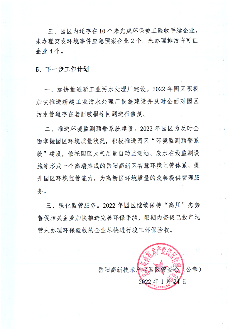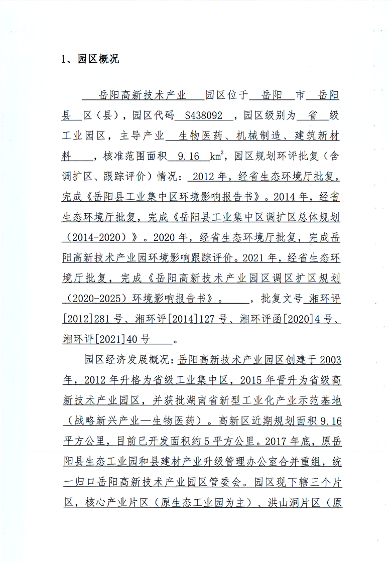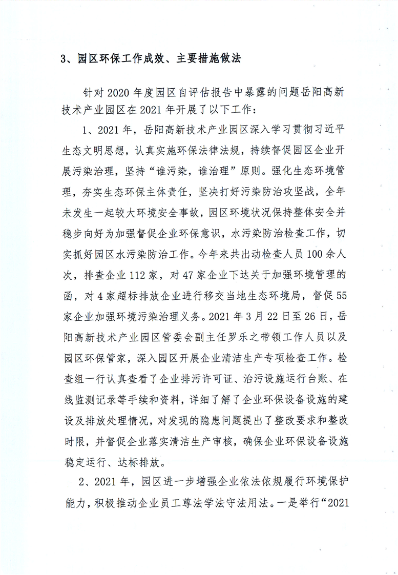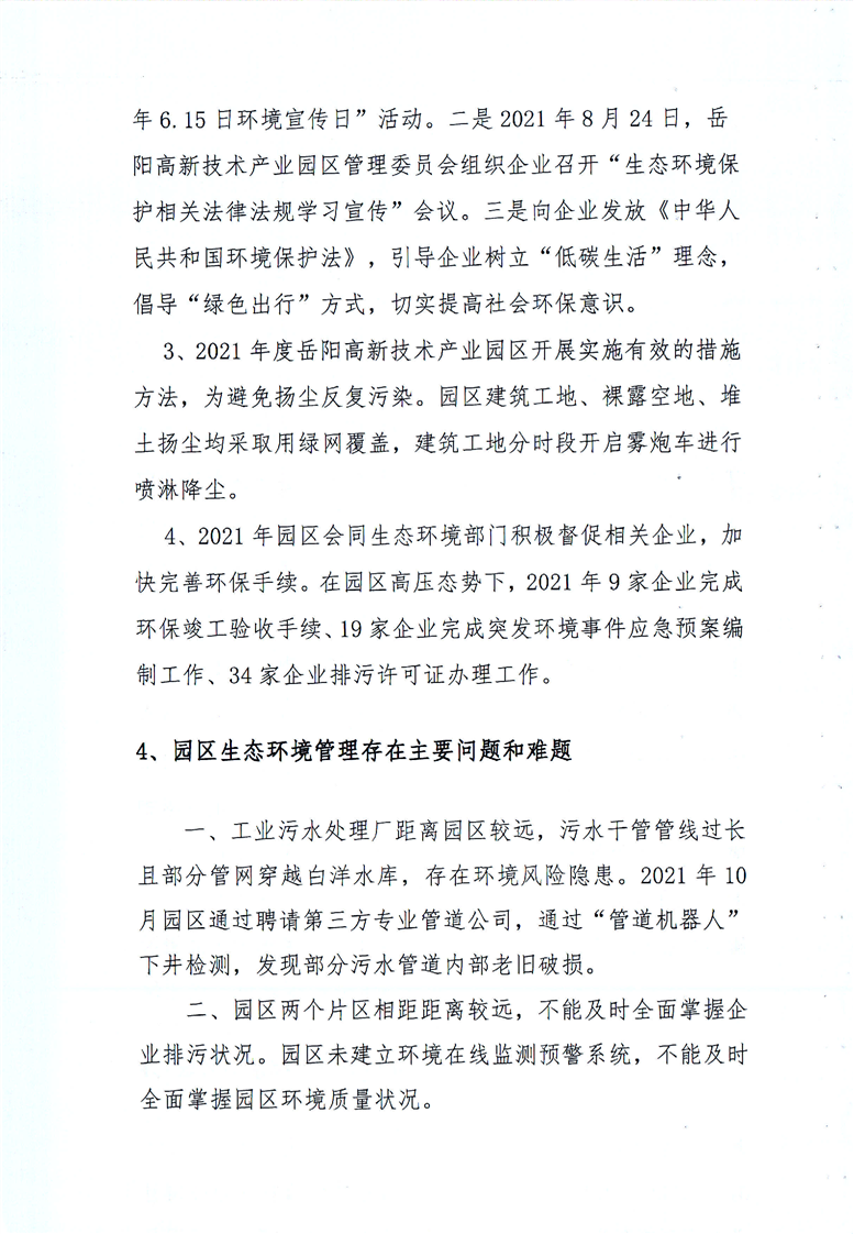 嶽陽高新技術產業園區2021年度生態環境管理現狀自評估報告
