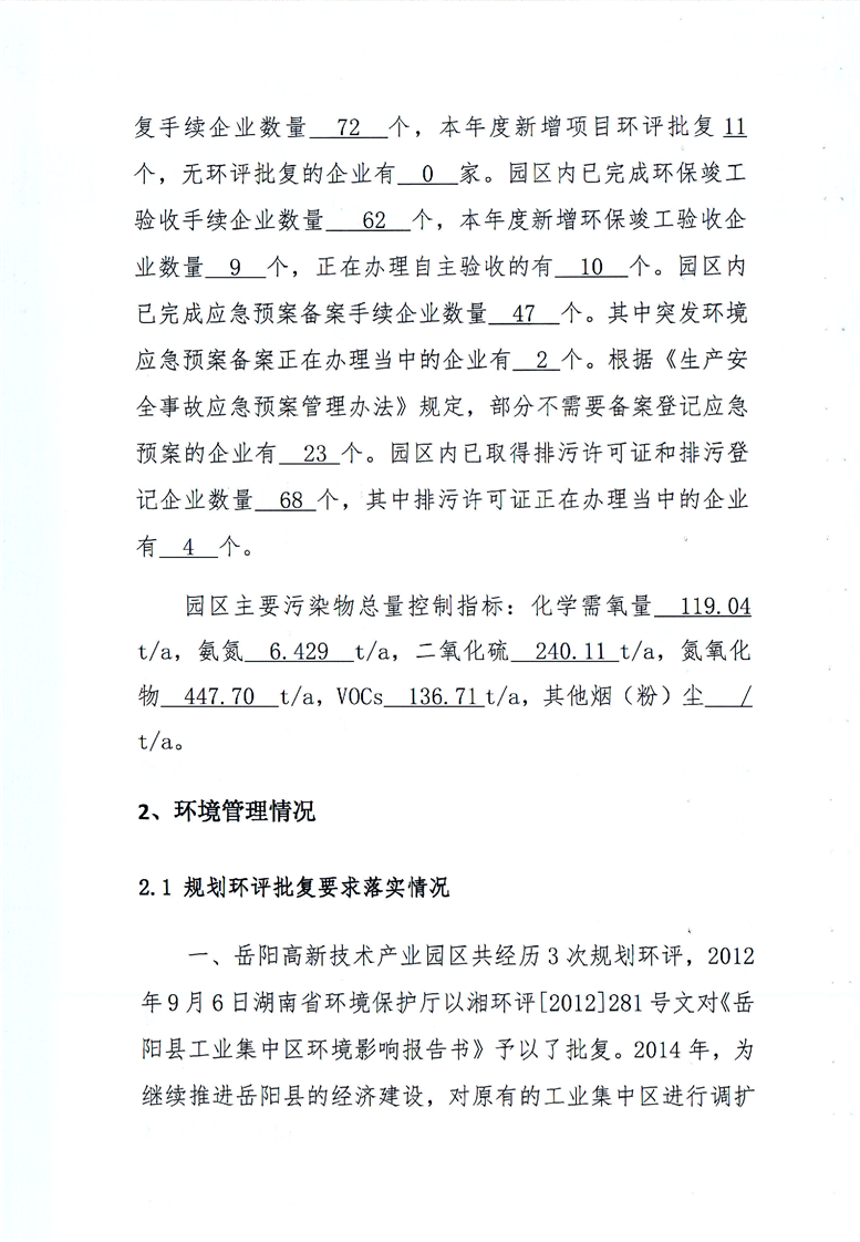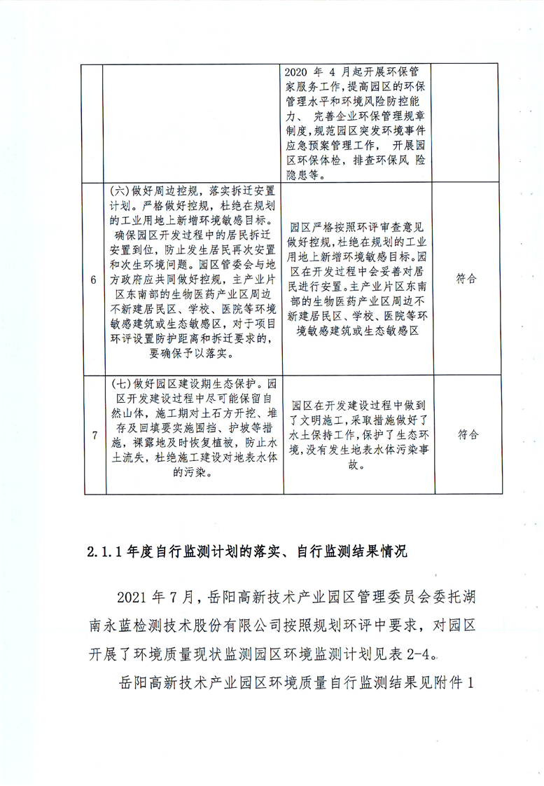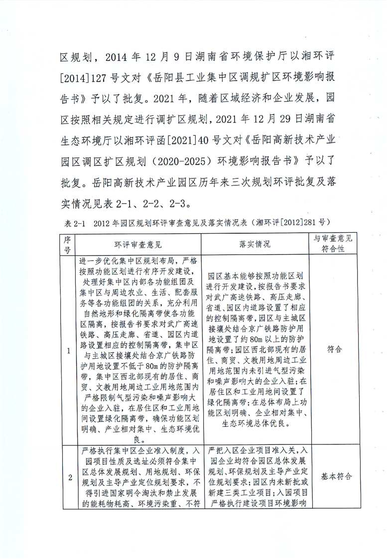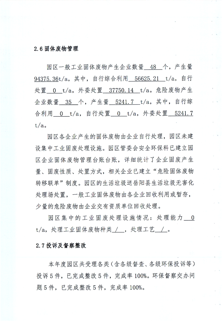 嶽陽高新技術產業園區2021年度生態環境管理現狀自評估報告