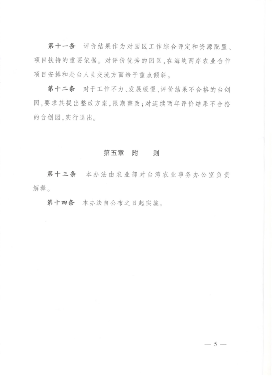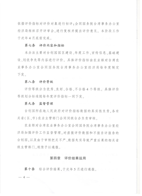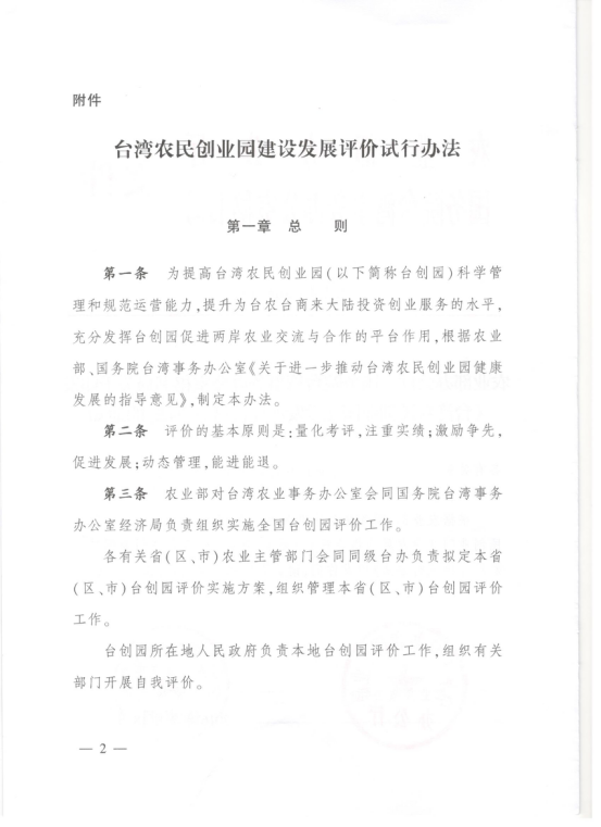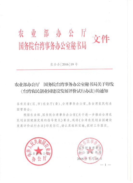 關於印發《台灣農民創業園建設發展評價試行辦法》的通知