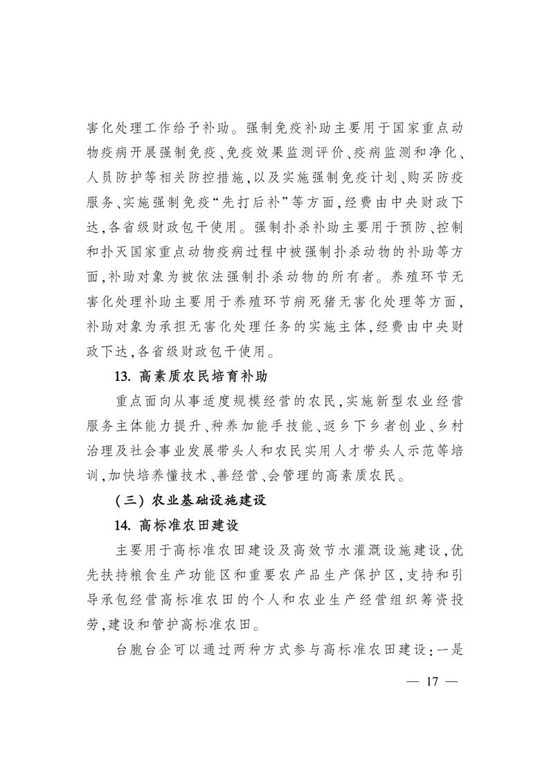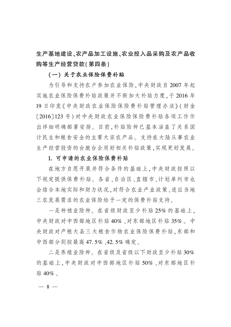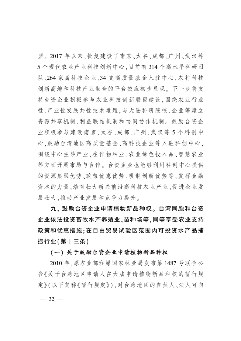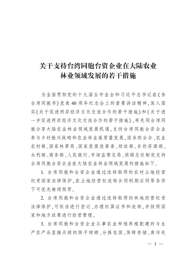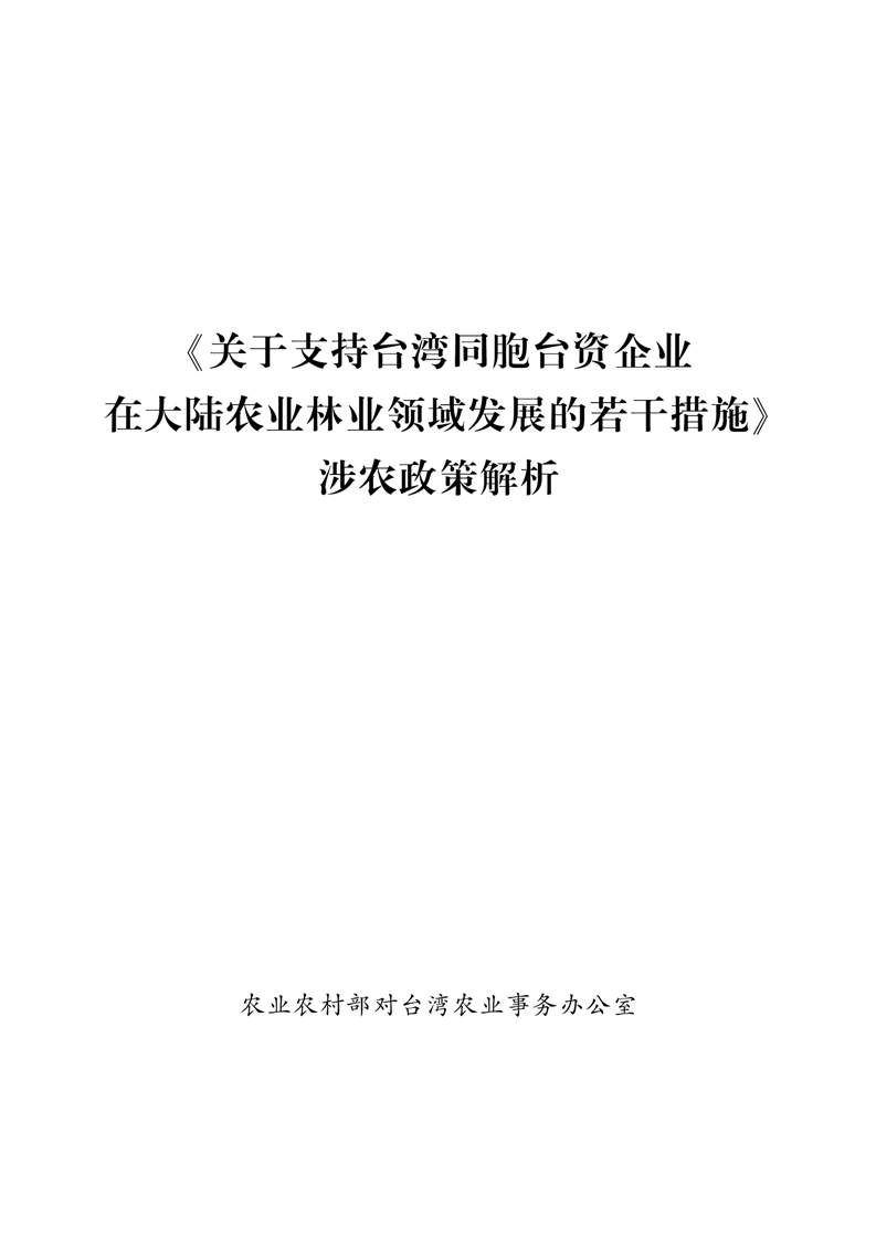 《關於支持台灣同胞台資企業在大陸農業林業領域發展的若幹措施》涉農政策解析