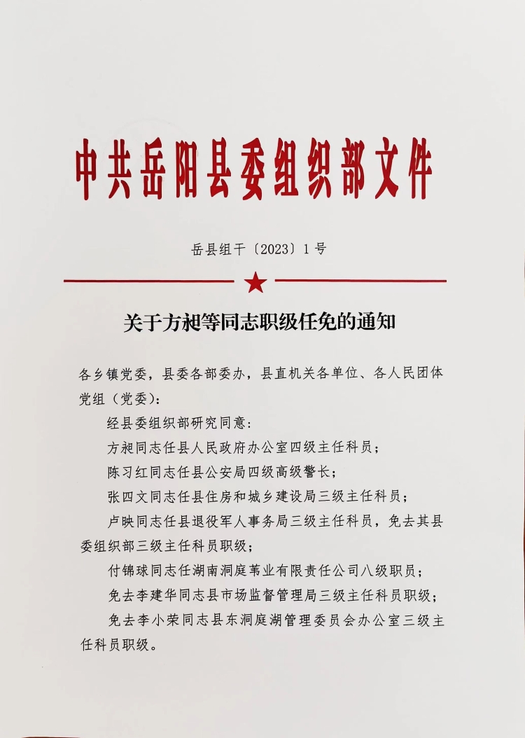 關於方昶等同誌職級任免的通知