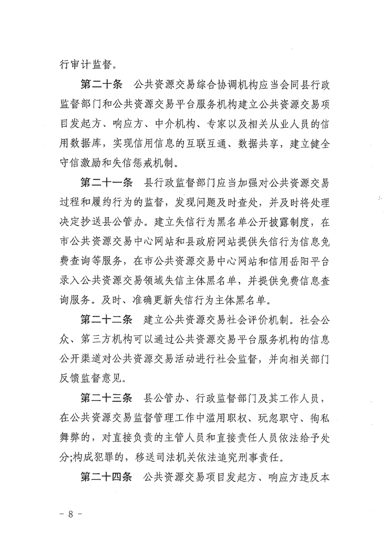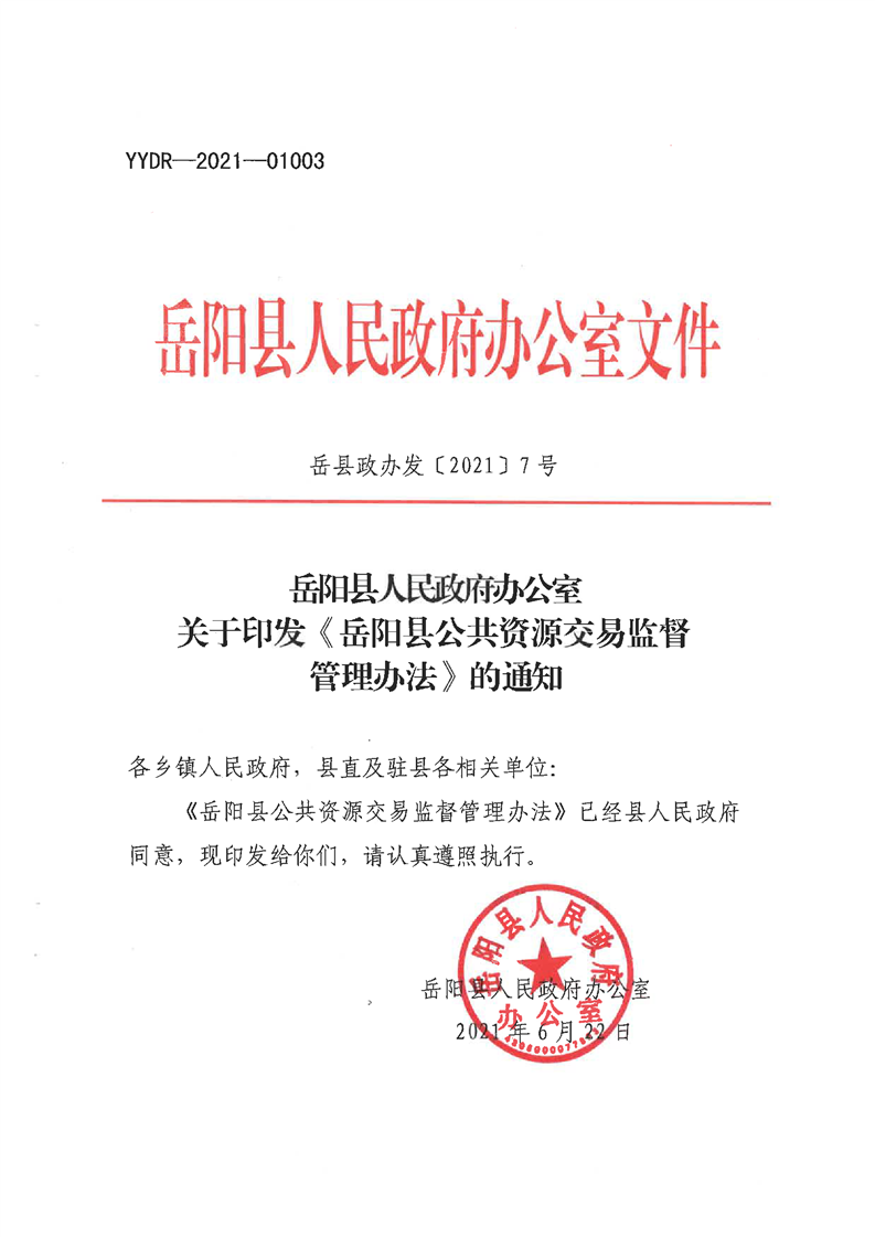 嶽陽縣公共資源交易監督管理辦法