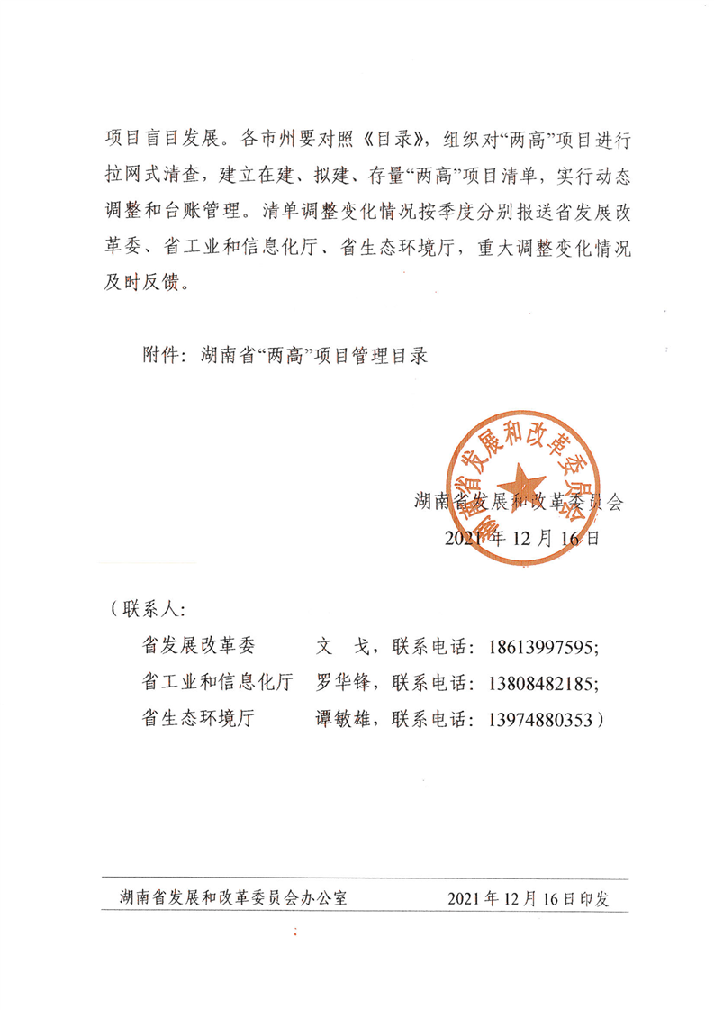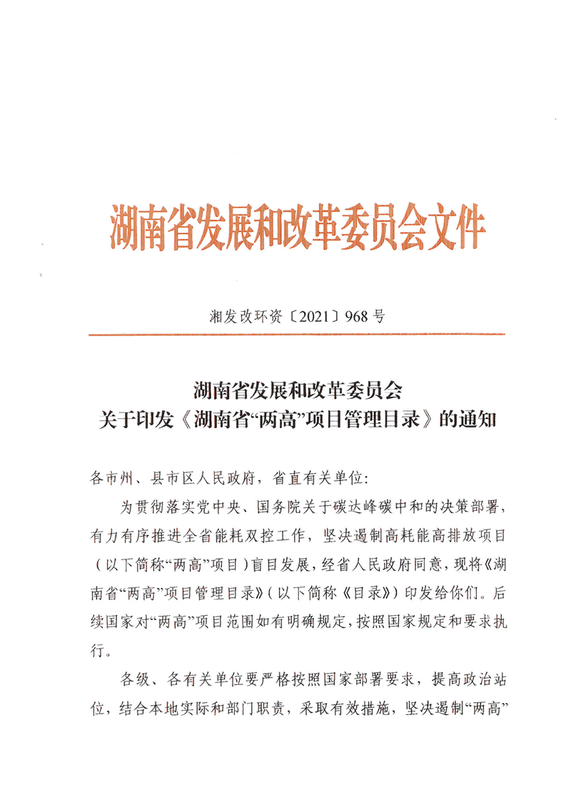 湖南省發改委關於印發《湖南省“兩高”項目管理目錄》的通知