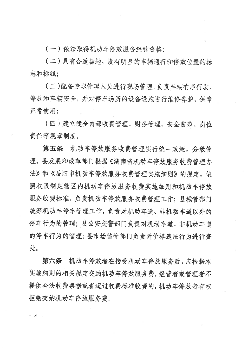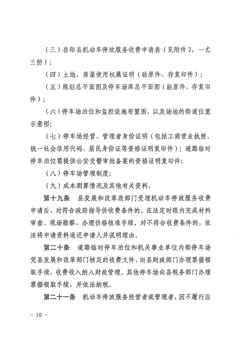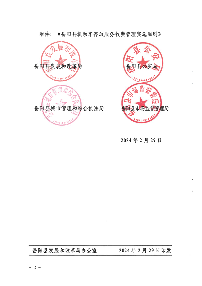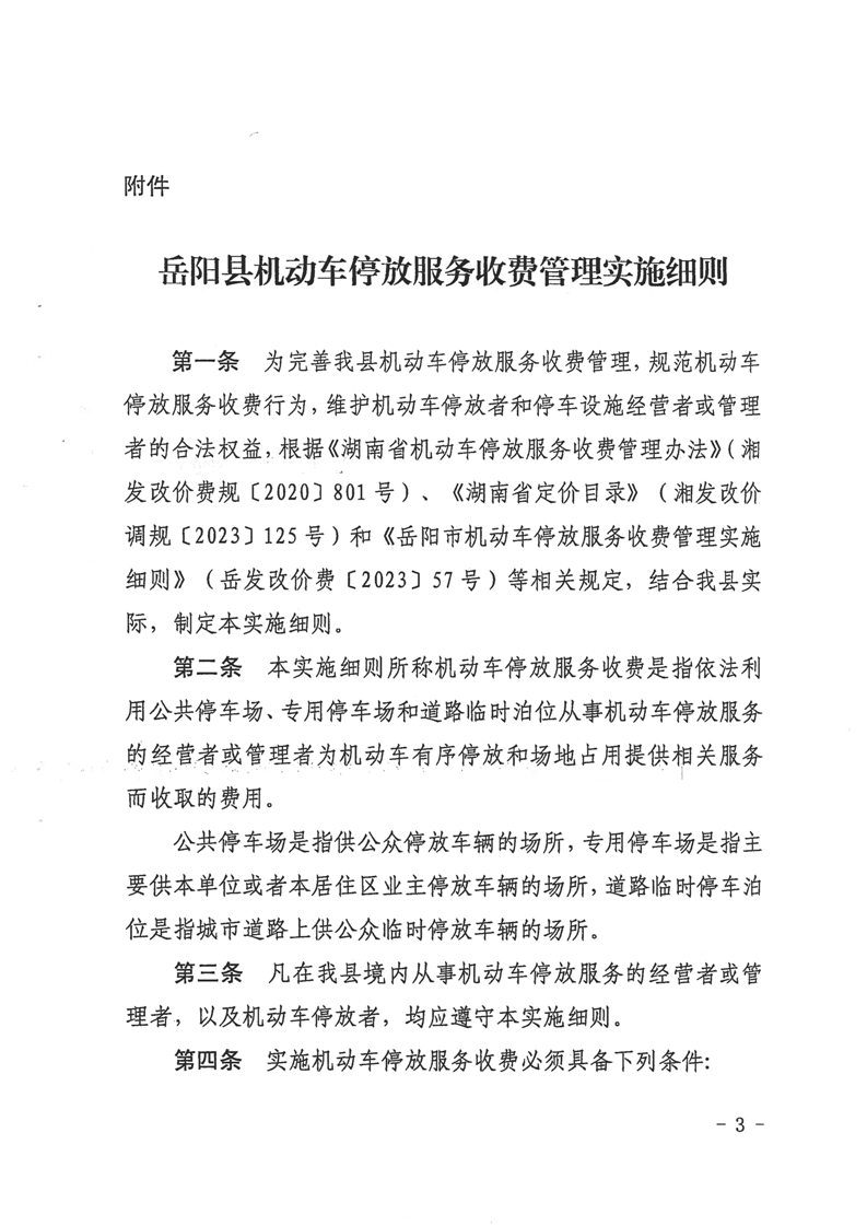 關於印發《嶽陽縣機動車停放服務收費管理實施細則》的通知