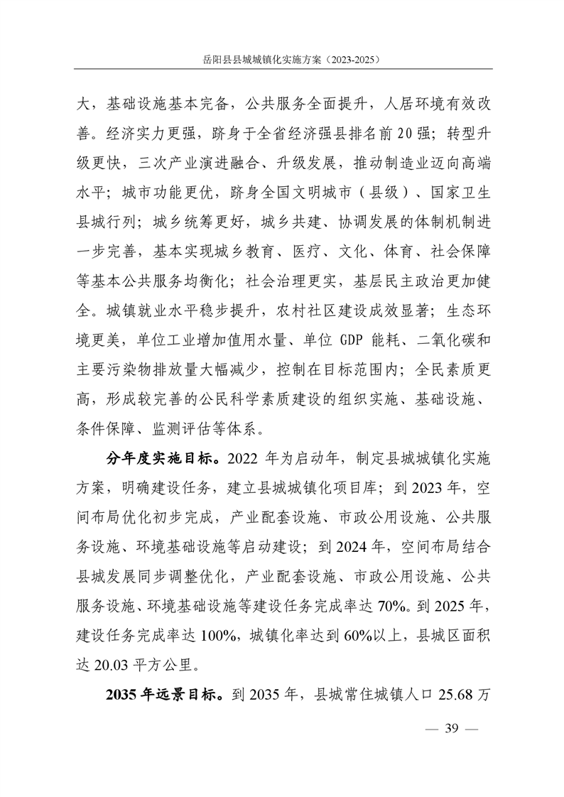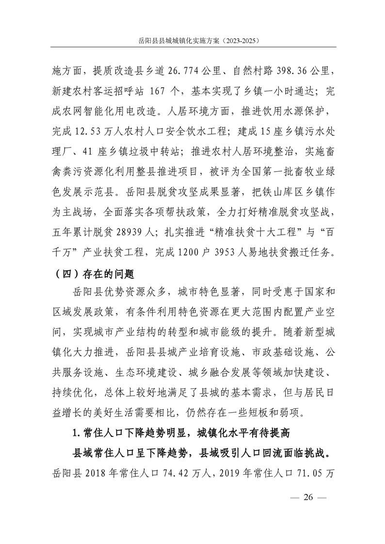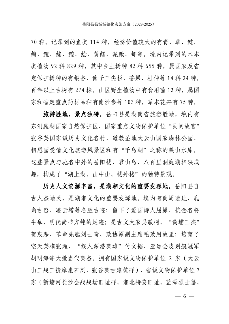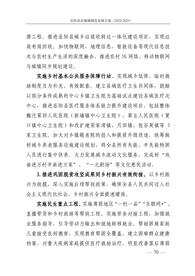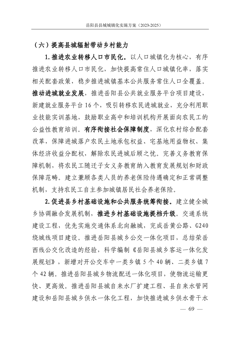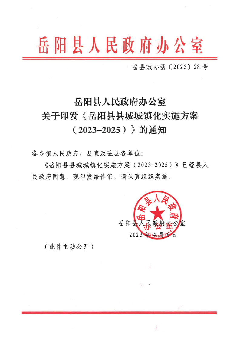 關於印發《嶽陽縣縣城城鎮化實施方案(2023-2025)》的通知